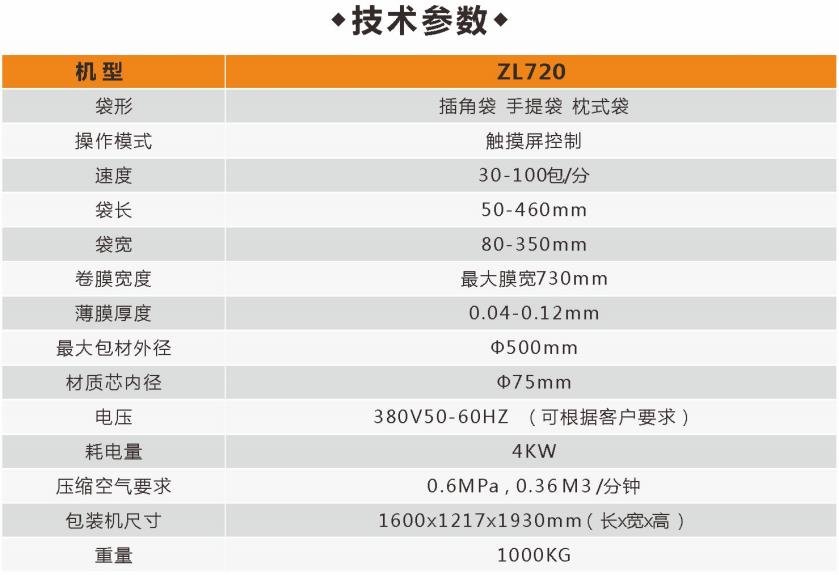 ZL720立式制袋充填包装机