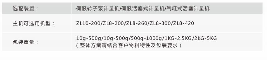 该机组由一台液体计量机、一台给袋式包装机、输送机等组成。主要用于酱料、油状、防水涂料等流动性产品的包装,能完成产品的自动计量包装,并可搭配重量选别机,金属检测机等实现自动复检的功能。