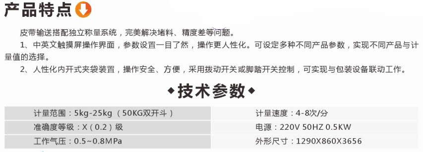 主要用于片状、颗粒状等流动性较差物料,能完成自动计量,自动填充等工作。